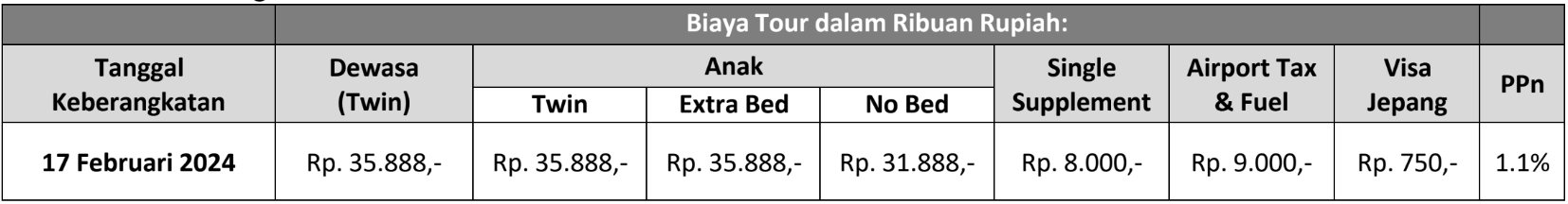 (Detail syarat – syarat dan ketentuan mengacu pada Buku Tour, Bukti Pembayaran Deposit/Invoice dan Website)